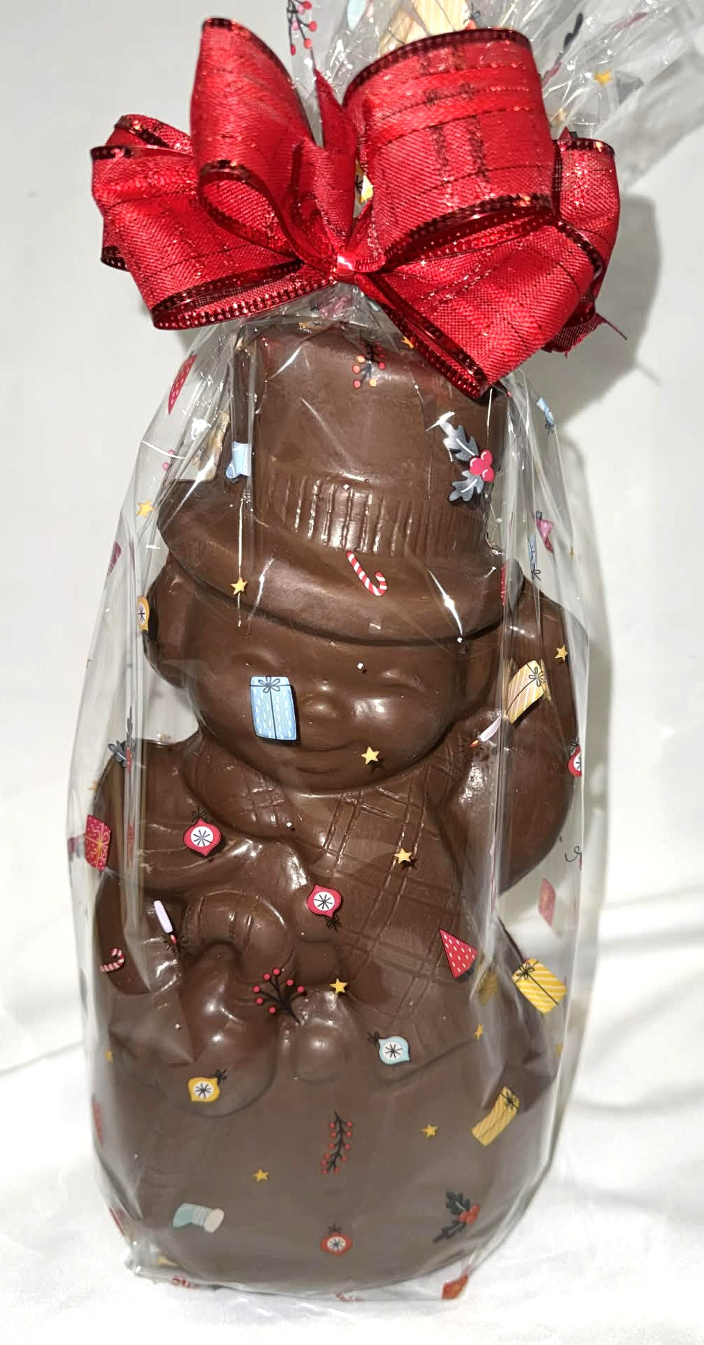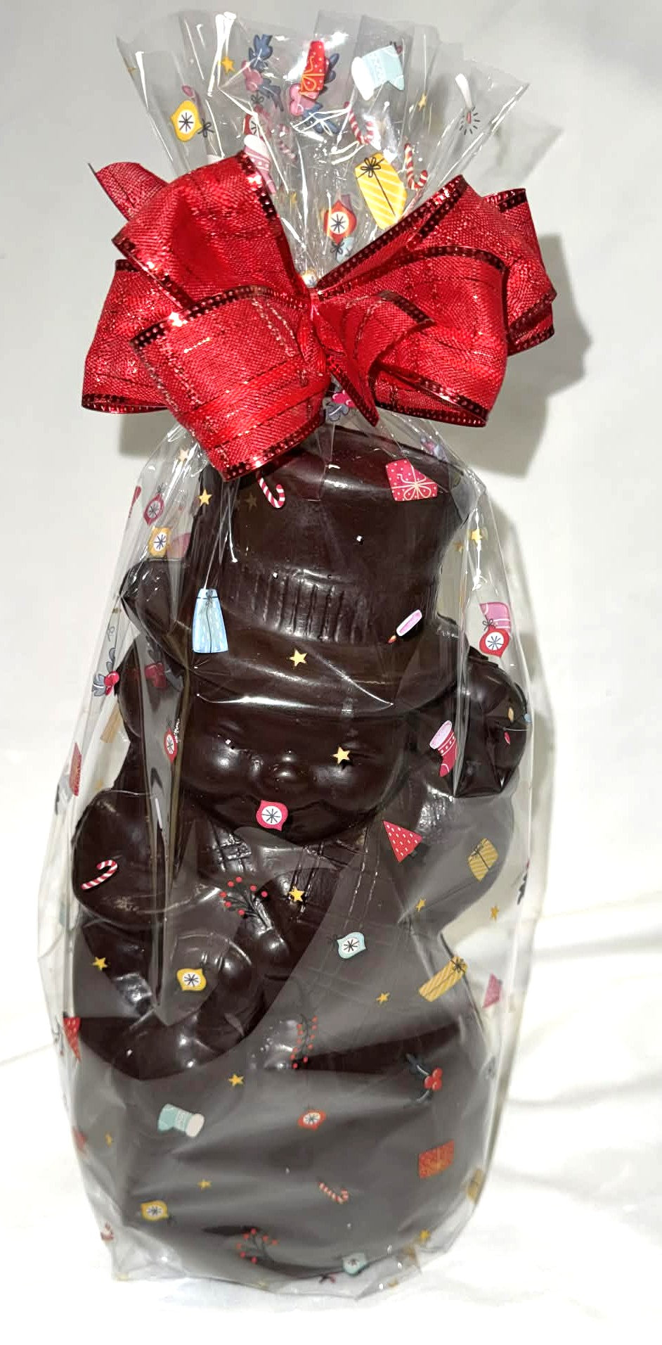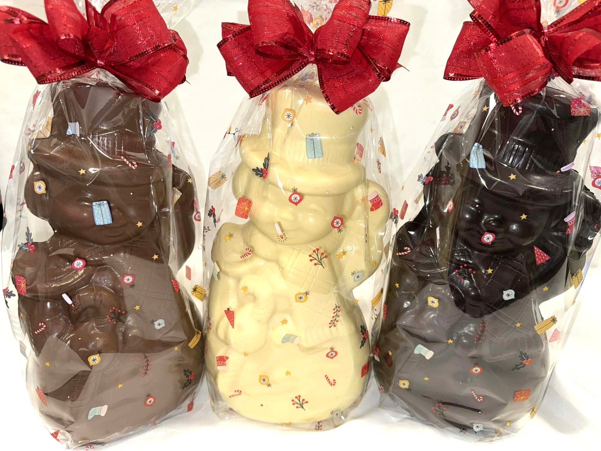 These molded snowmen are made in milk, dark or white and are perfect as a hostess gift.