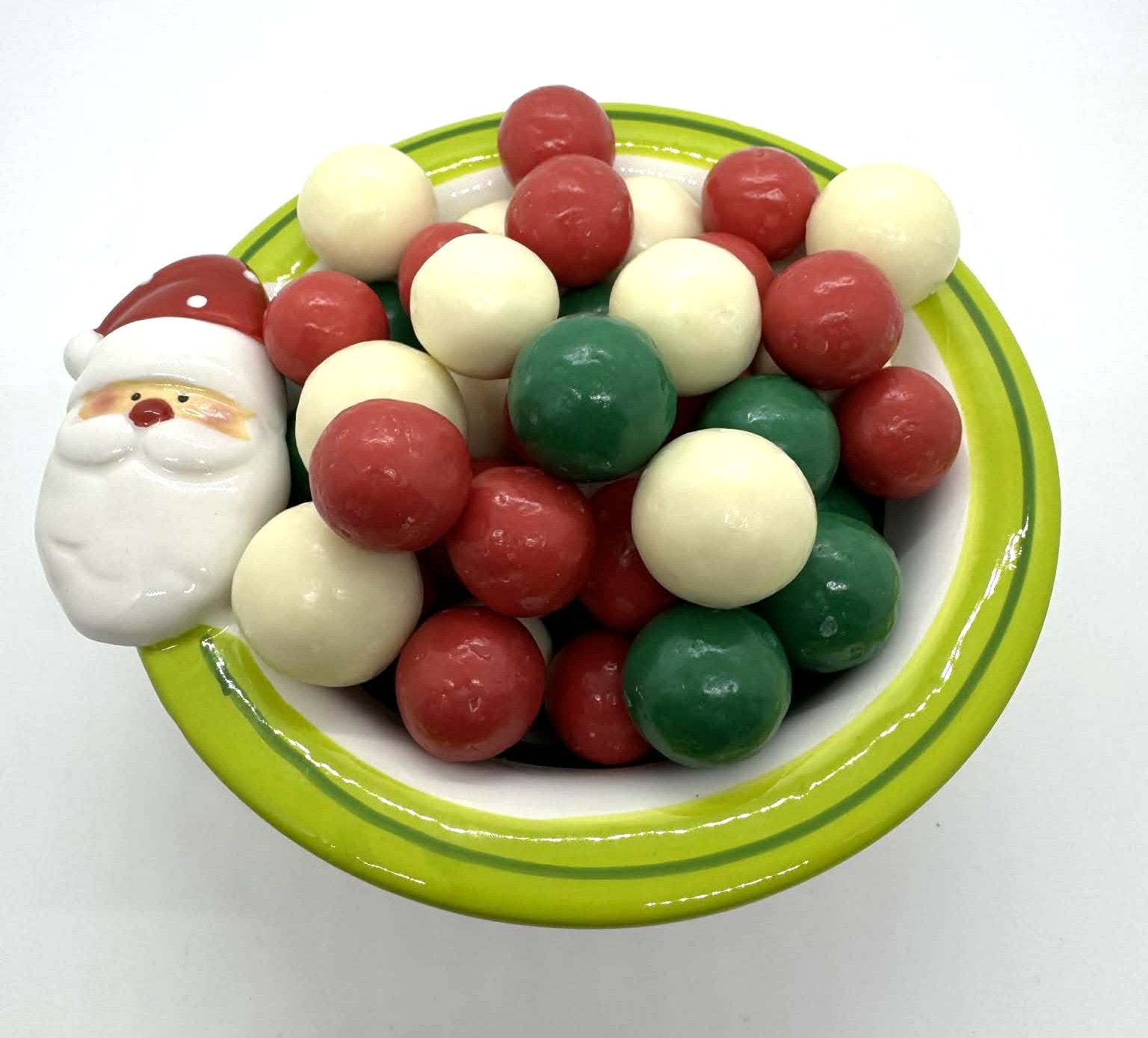 Malted milk balls coated in red, green and white chocolate. Choose from an 8oz bag or a bottle with a bow